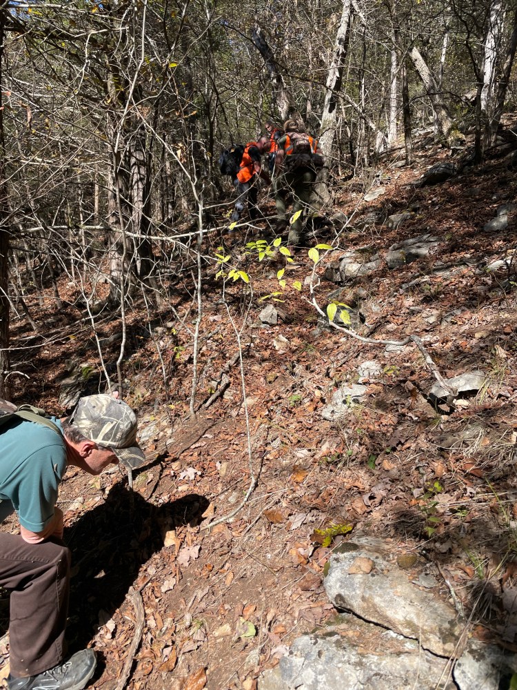 Over the course of the weekend each group was able to get time in on both Elk and White-tailed deer. We did find old hog sign where multiple fields had been rooted in, but no fresh tracks or trails. And while following a deer trail one group found a telephone pole that a black bear had been rubbing, biting, and scent marking, but no fresh tracks or trails to follow.